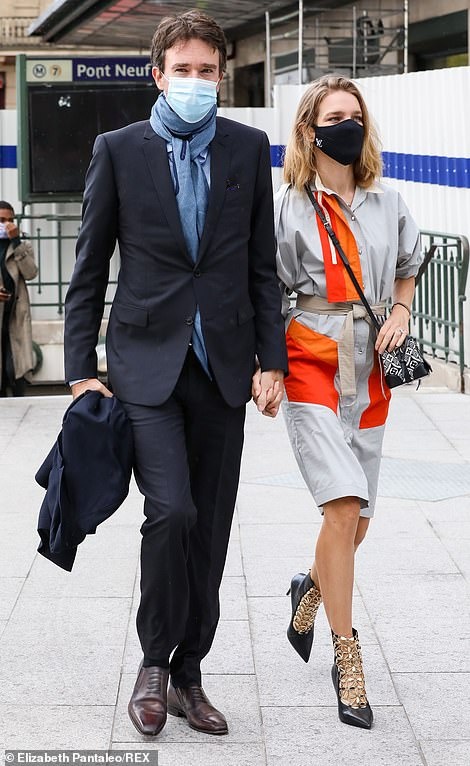Người mẫu Natalia Vodianova và hôn phu Antoine Arnault xuất hiện thời thượng tại sự kiện. Người đẹp Nga thu hút ống kính với bộ trang phục màu xám nhạt, phối cùng những mảng màu tone cam neon bắt mắt. Trước đó, hai ngôi sao đã tạm dời lễ cưới do ảnh hưởng của dịch Covid-19. Ảnh: Getty. |