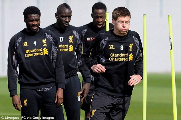 | Gerrard và đồng đội tập luyện chuẩn bị cho cuộc đại chiến với Chelsea vào cuối tuần này. Ảnh: Daily Mail. |