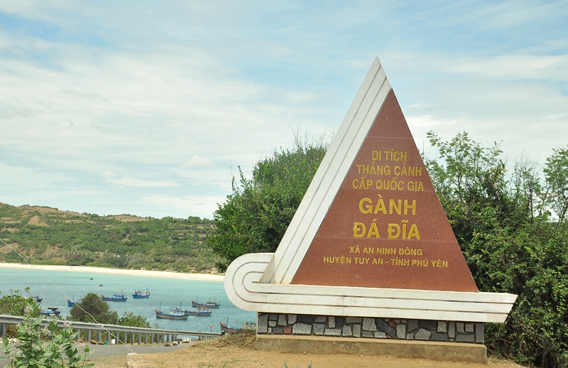 Từ thành phố Tuy Hòa, xuôi theo quốc lộ 1A về hướng Bắc 30km, sau đó đến thị trấn Chí Thạnh rẽ phải về hướng Đông 12km là bạn đã đến với Ghềnh Đá Đĩa (còn có các cách gọi khác là Gành Đá Đĩa). Thắng cảnh nổi tiếng này nằm yên bình bên bờ biển thuộc địa phận xã An Ninh Đông, huyện Tuy An, tỉnh Phú Yên. Suốt trên đường đi, băng qua những làng mạc yên bình khi thì đồi núi trập trùng, lúc lại thấp thoáng làng mạc với những cánh đồng lúa đang thời con gái lên màu xanh tốt.