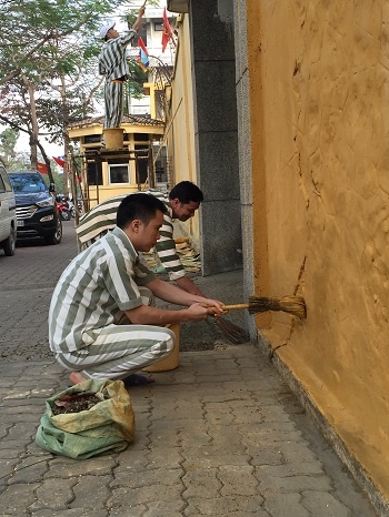 | Tích cực sửa sang khu vực trại giam để chuẩn bị đón Tết. |