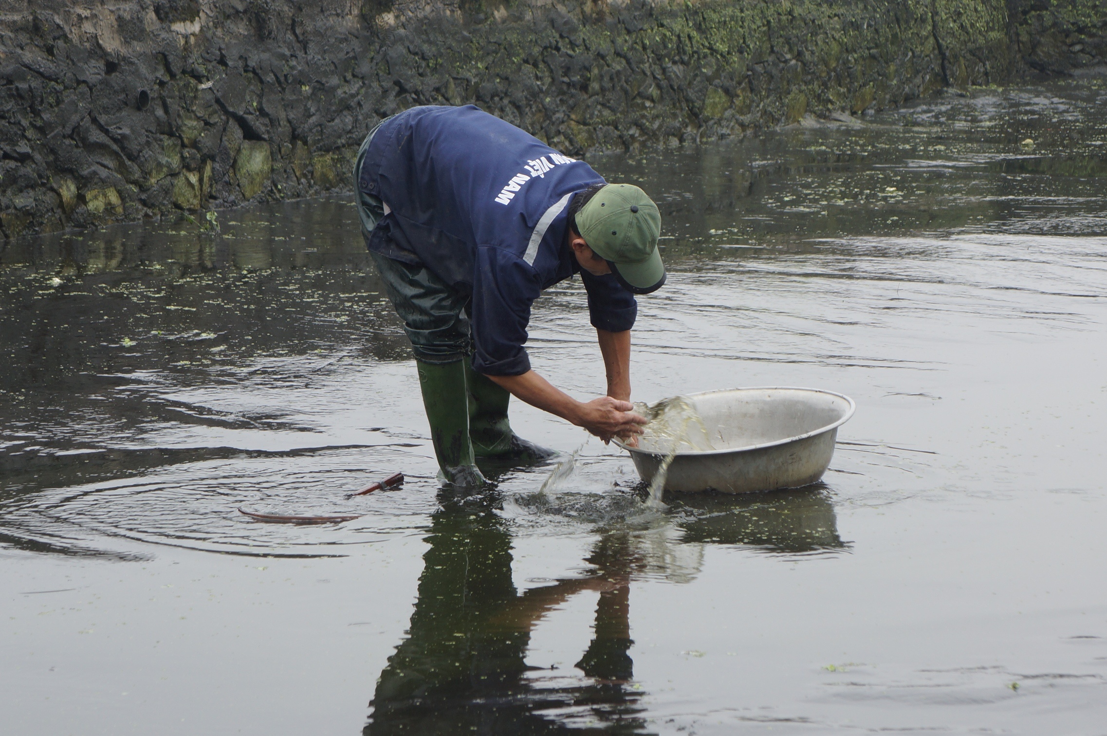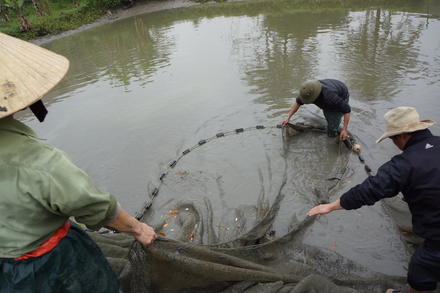 | Sáng 22 tháng Chạp, các ao cá chép làng Tân Cổ đã được rút cạn nước, thu hoạch xong. |