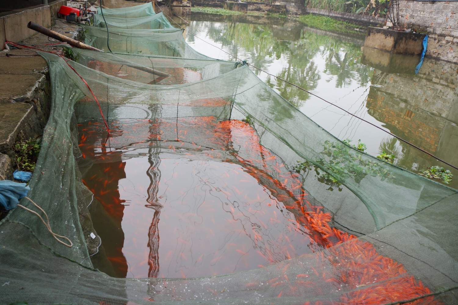 | Tân Cổ là làng nghề nuôi cá chép đỏ từ lâu đời. Hầu như nhà nào cũng có ao, ít thì 1, nhiều đến 3 - 4 ao để nuôi cá giống, đặc biệt là cá chép "phục vụ" ông Công, ông Táo (23 tháng Chạp âm lịch). |