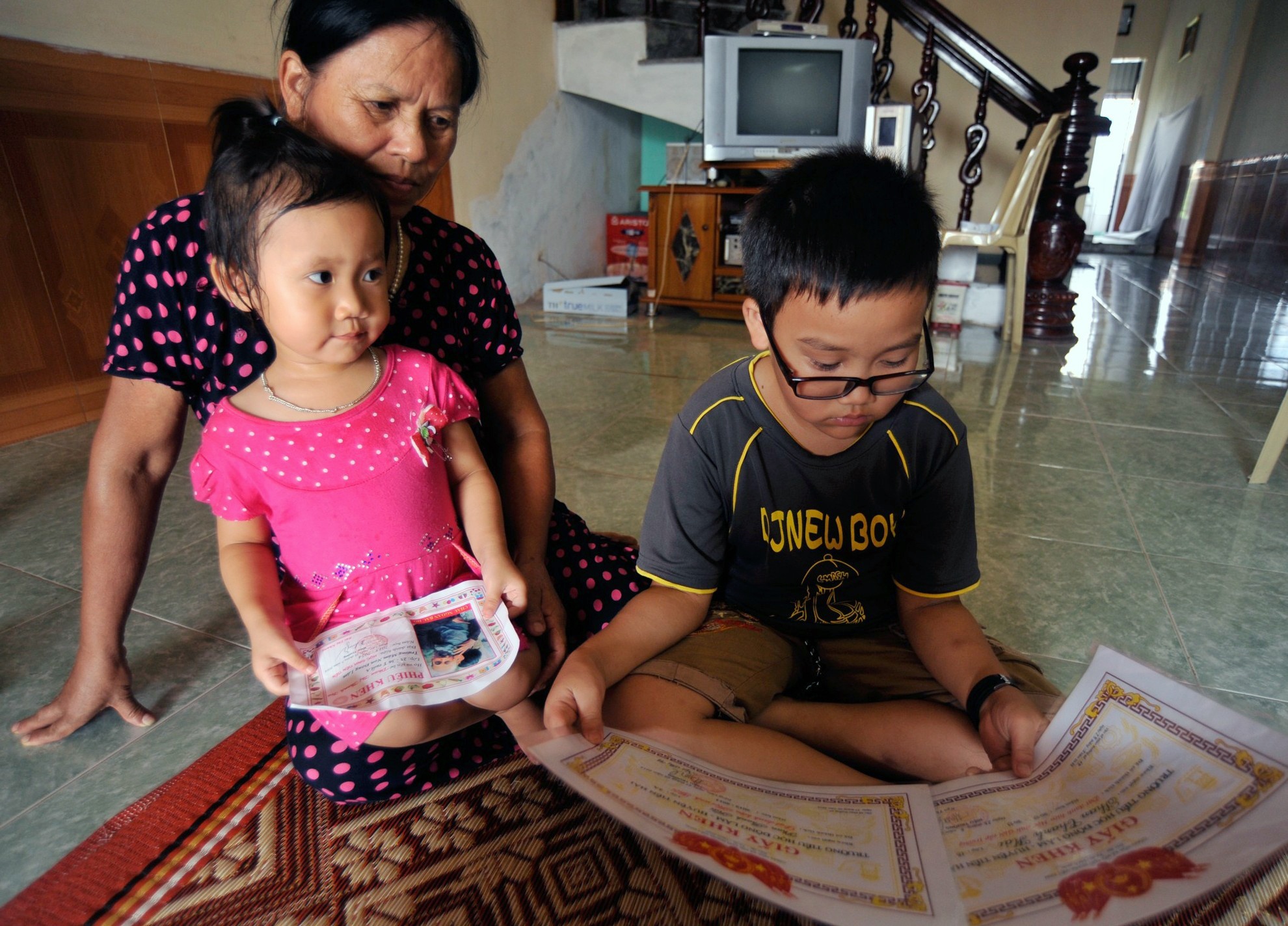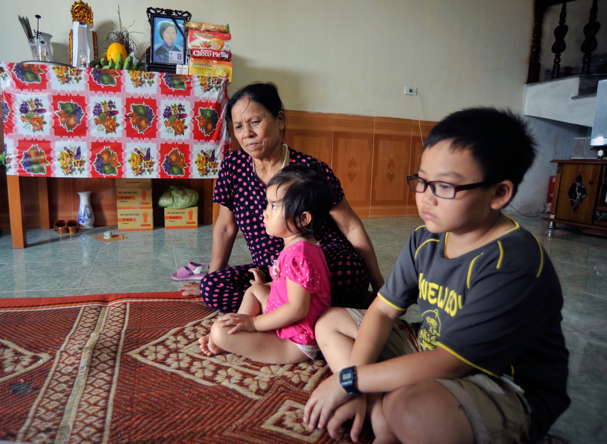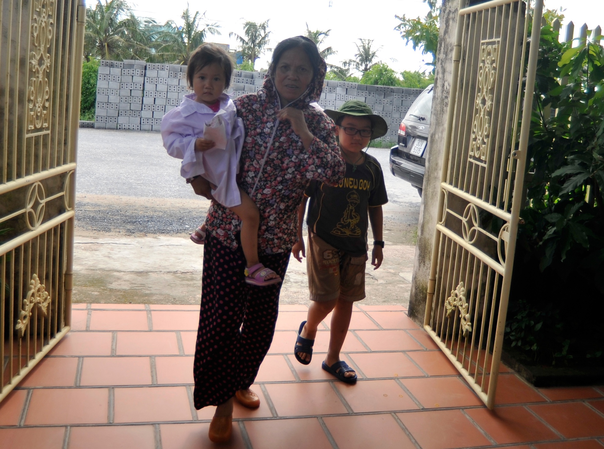 Con trai thì đi biền biệt làm nhiệm vụ trên tàu ngoài quần đảo Hoàng Sa, con dâu mới qua đời chưa được 100 ngày, mọi công việc chăm sóc hai đứa nhỏ dồn cả lên vai bà. Căn nhà của anh Vỹ và hai bé đành bỏ không, bà đưa hai cháu về ngôi nhà nhỏ của mình cũng trong xã Đông Lâm để tiện nuôi dạy các cháu, đồng thời hàng ngày đưa đi học.