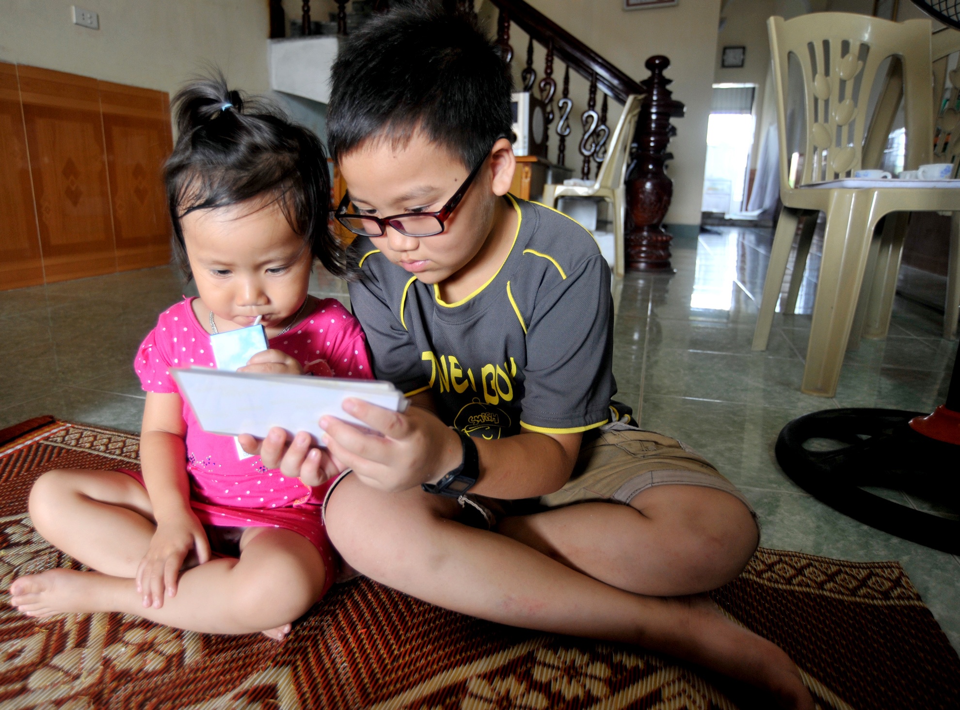 Ngoài giờ học hai anh em Hải cứ thơ thẩn ngồi chơi lanh quanh trong nhà, còn bà lúi húi dọn dẹp dưới bếp.