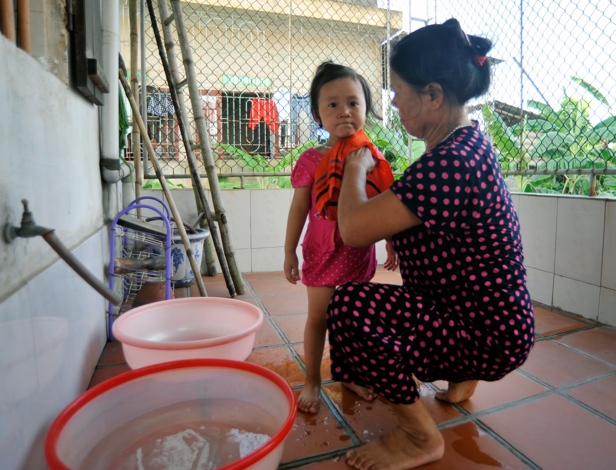 Cắm xong nồi cơm để thắp hương cho con dâu, bà Huê tranh thủ tắm rửa cho 2 đứa trẻ và đôn đốc việc học của cháu Hải. Ngày nào bà Huệ cũng đưa hai bé trở về nhà của chúng quét dọn, thắp hương cho ngôi nhà bớt lạnh lẽo.