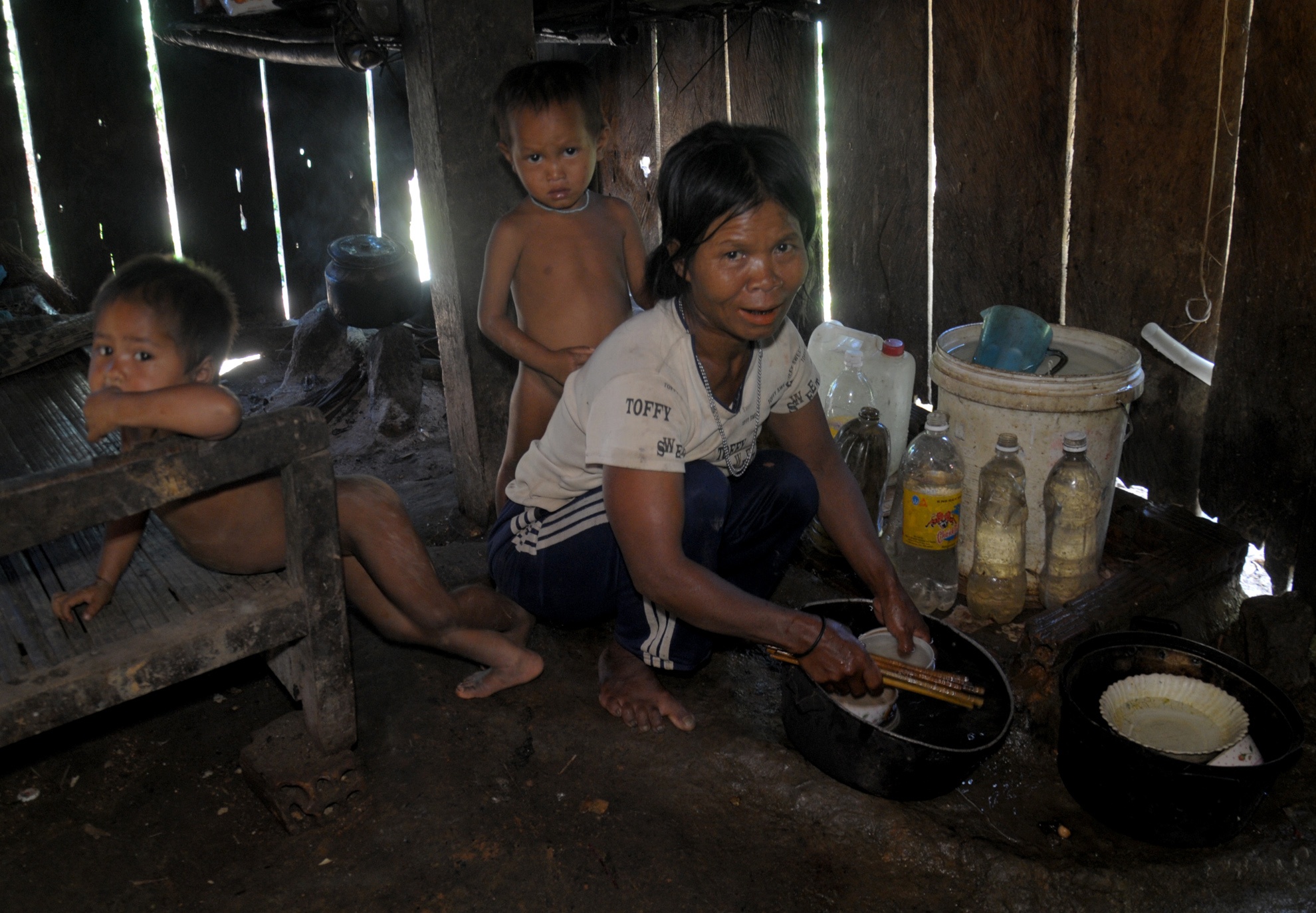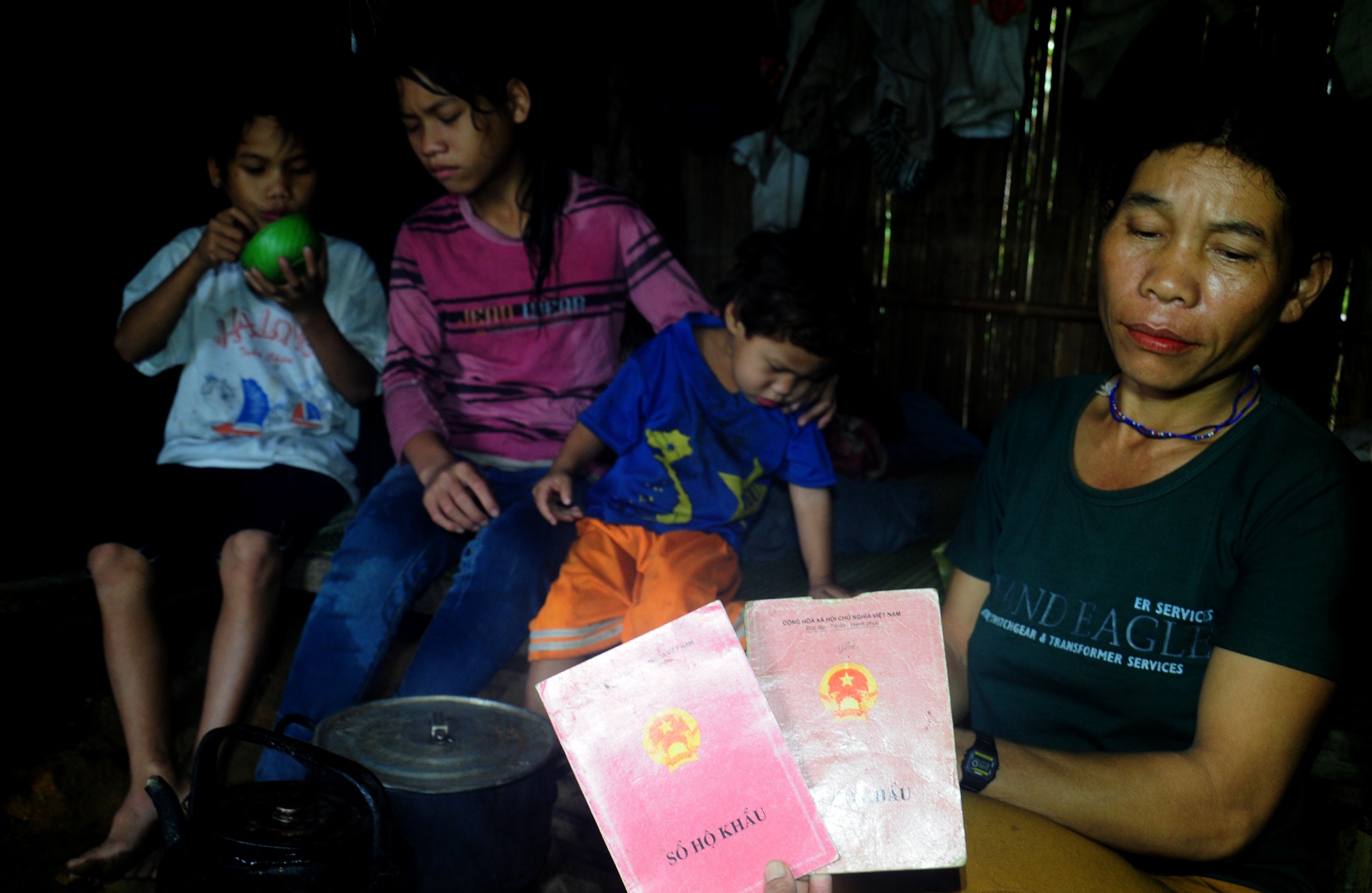 | Cuộc sống khó nghèo, bà Hồ Thị Phương (vợ ông Dế) suốt ngày đi làm thuê trên nương rẫy, gùi củi trên núi về làm chất đốt nấu ăn cho gia đình. "Sinh đến đứa con thứ 9, năm 2007, tôi đến Trạm y tế xã đặt vòng tránh thai nhưng năm 2011 tôi lại mang bầu. Lúc ấy đi khám thì các y sĩ bảo tôi bị rớt vòng từ lâu nên tiếp tục có thai rồi đẻ đứa con thứ 10", bà Phương phân trần. |