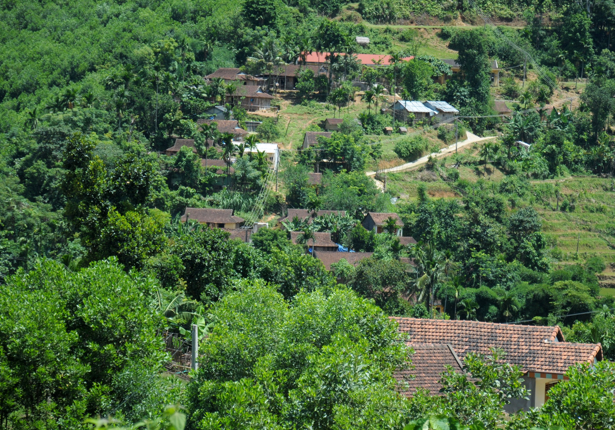 | Bản làng thôn Trà Ong, xã Trà Quân nằm cách trung tâm huyện vùng cao Tây Trà hơn 20 km, nơi có nhiều cặp vợ chồng sinh từ 5 đến 10 người con. |