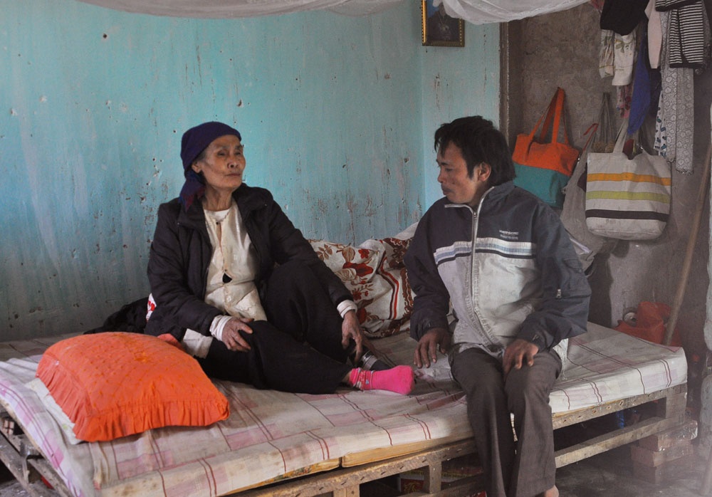 | Bà Đỗ Thị Xúi (sinh năm 1945) là vợ ông Tưng cho biết, trước khi đi bộ đội, hai bên gia đình đã cho phép ông bà đi lại. Ngày ông về họ tổ chức đám cưới. Nhưng sau đó không may ông lại mắc bệnh quái lạ. Bà Xúi bị bại liệt đã gần 20 năm nay, chỉ ngồi một chỗ không có khả năng lao động. |