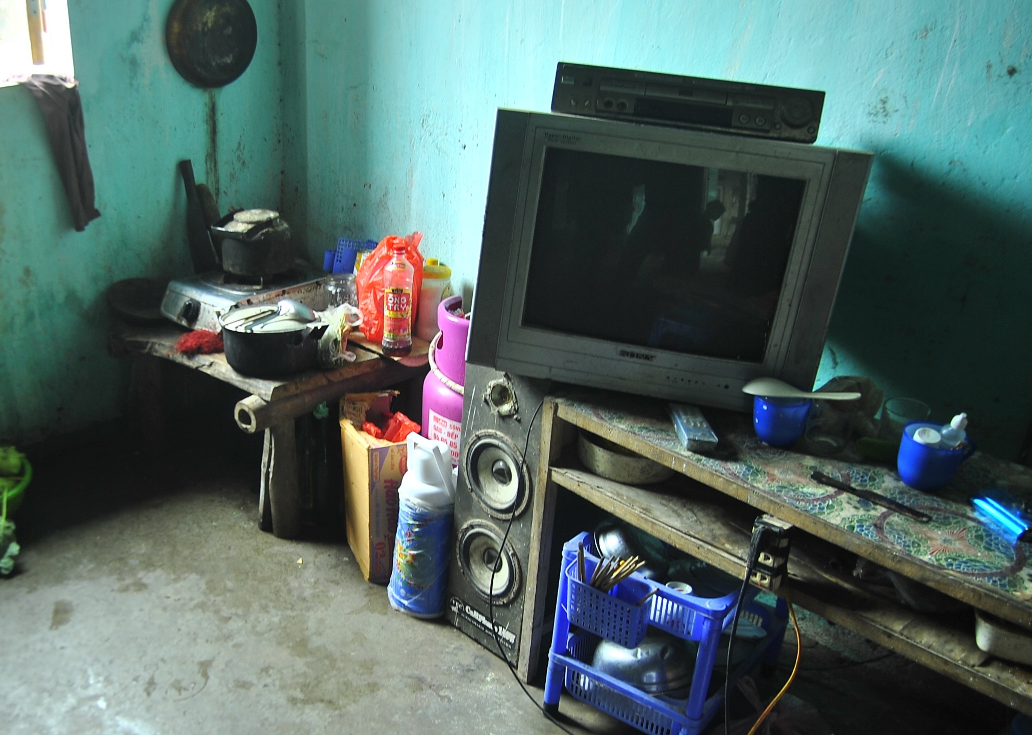 | Chiếc tivi gia đình bà mới được tặng để xem bắn pháo hoa đêm giao thừa. Ông Đặng Văn Thiết, Trưởng thôn Võ Lao cho hay, ngôi nhà ông Tưng, bà Xúi được khánh thành từ tháng 7/2014. Từ đó, gia đình không còn sống cảnh dột nát nữa. Bếp nấu cơm, nhà vệ sinh được xây khép kín, có nước sạch tận nơi. Chính quyền địa phương cũng đã xem xét làm lại sổ thương binh đã bị mất và hộ khẩu mới cho gia đình ông. |