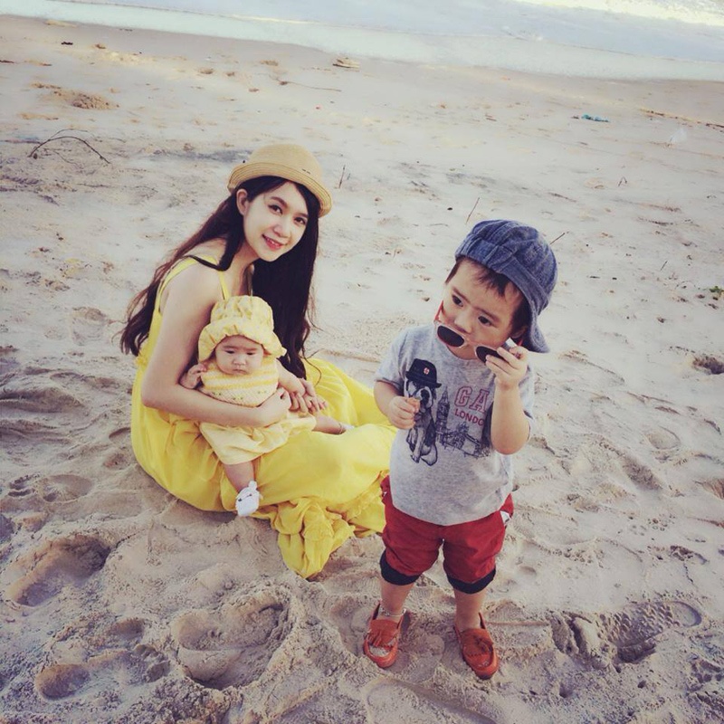 Người đẹp 28 tuổi khoe dáng thon bên công chúa nhỏ. Cô cho biết luôn hài lòng với cuộc sống hiện tại. Ngoài việc chăm sóc hai con, cô cũng giúp ông xã nhận show, sắp xếp lịch lưu diễn. Nhờ thế, Lý Hải chỉ tập trung vào chuyên môn ca hát mà không phải lo nghĩ điều gì.