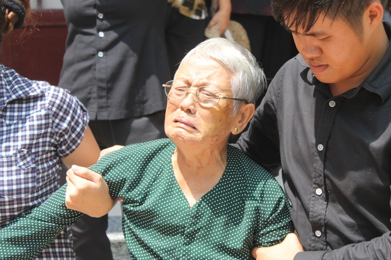 | Mẹ nạn nhân khóc nức nở khi đến tòa. |