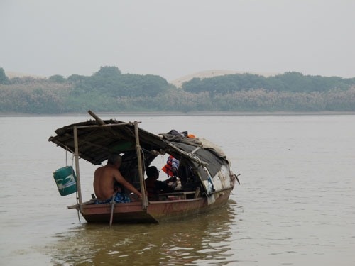 | Sáng nay, gia đình anh Huy lại thuê chiếc thuyền này để xuôi về phía hạ lưu 50 km tìm kiếm. |