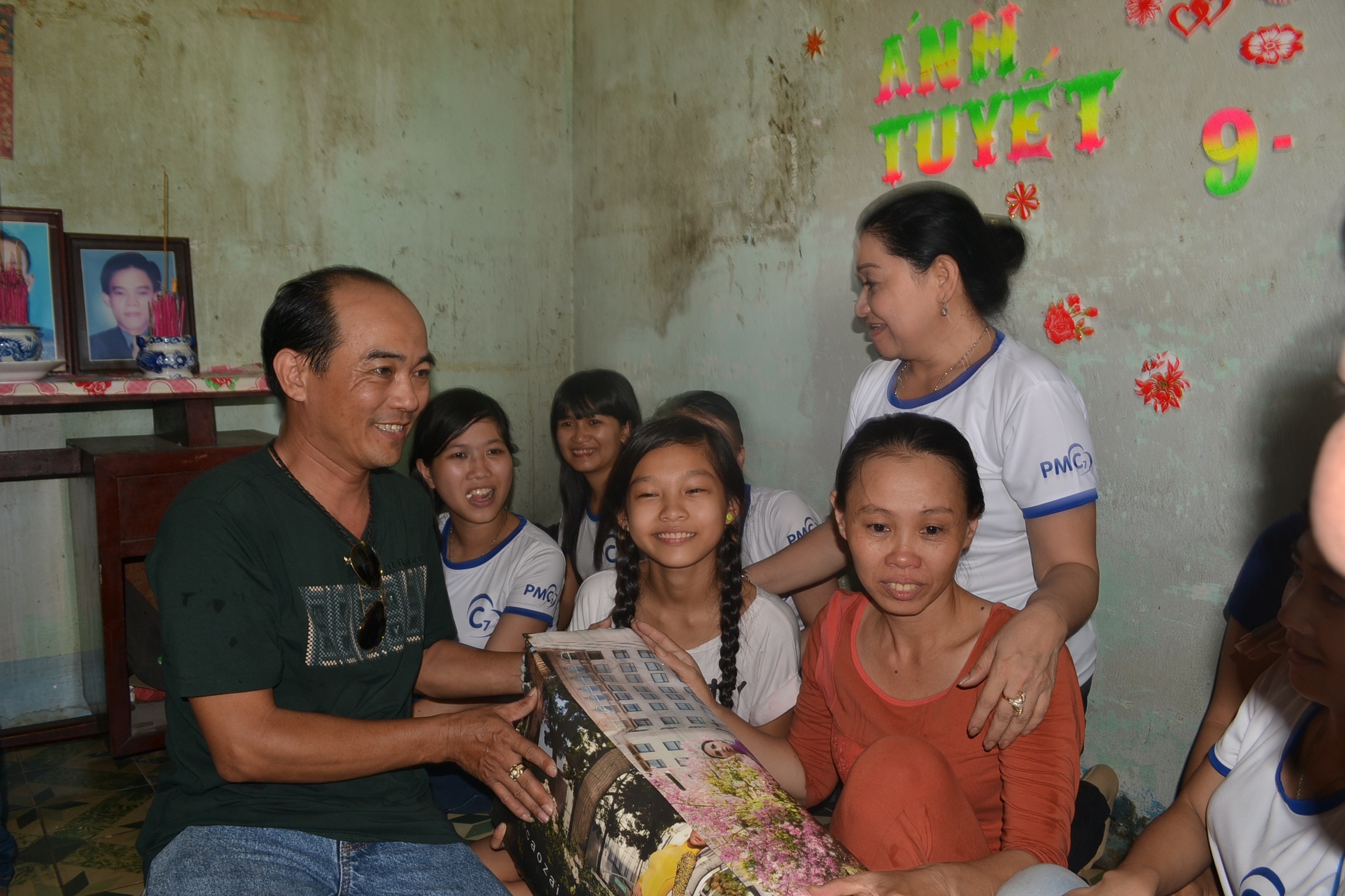 | Hai mẹ con Thu Hiền rất xúc động trước tình cảm và sự quan tâm của gia đình Phương Mỹ Chi cũng như người hâm mộ "chị Bảy". |