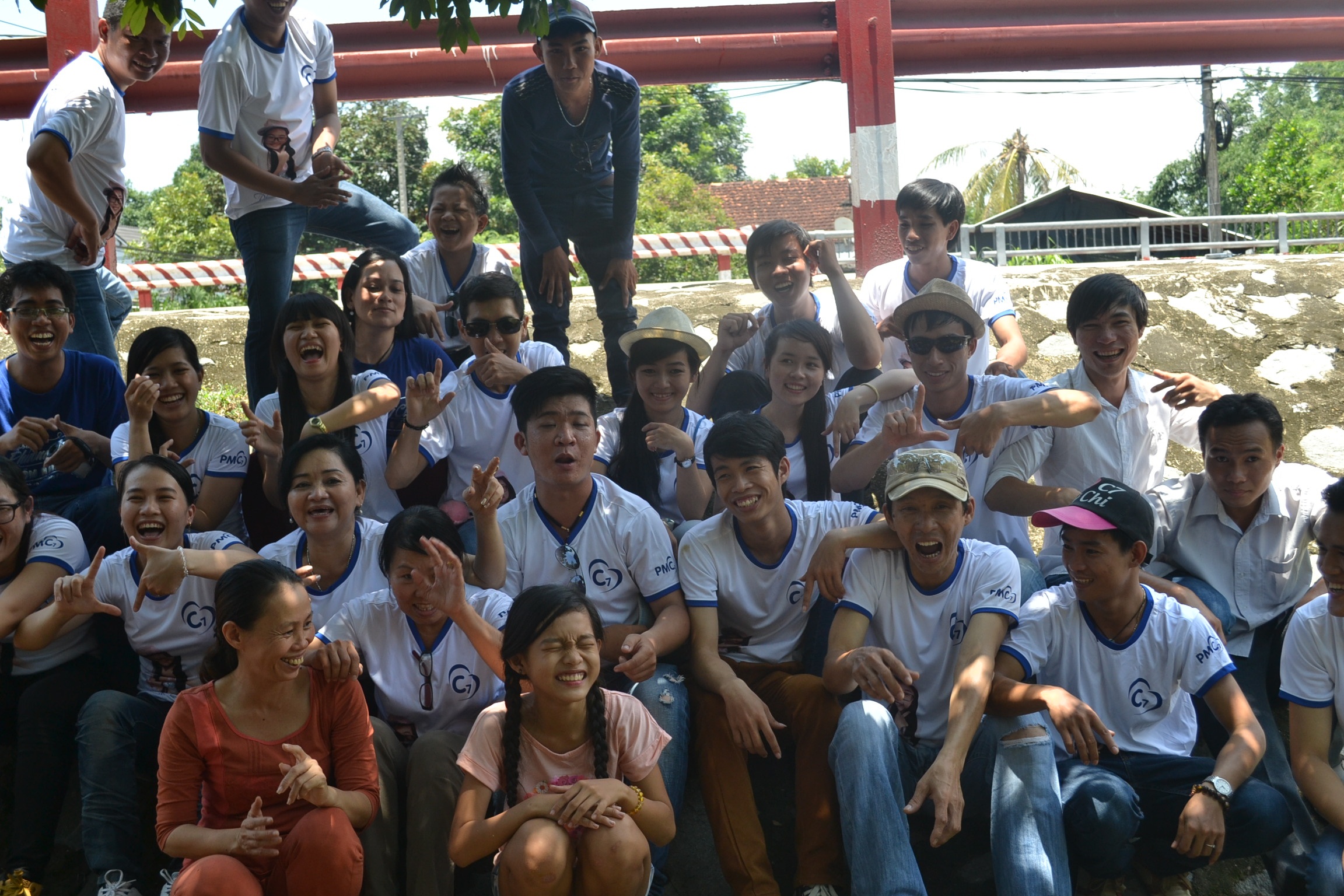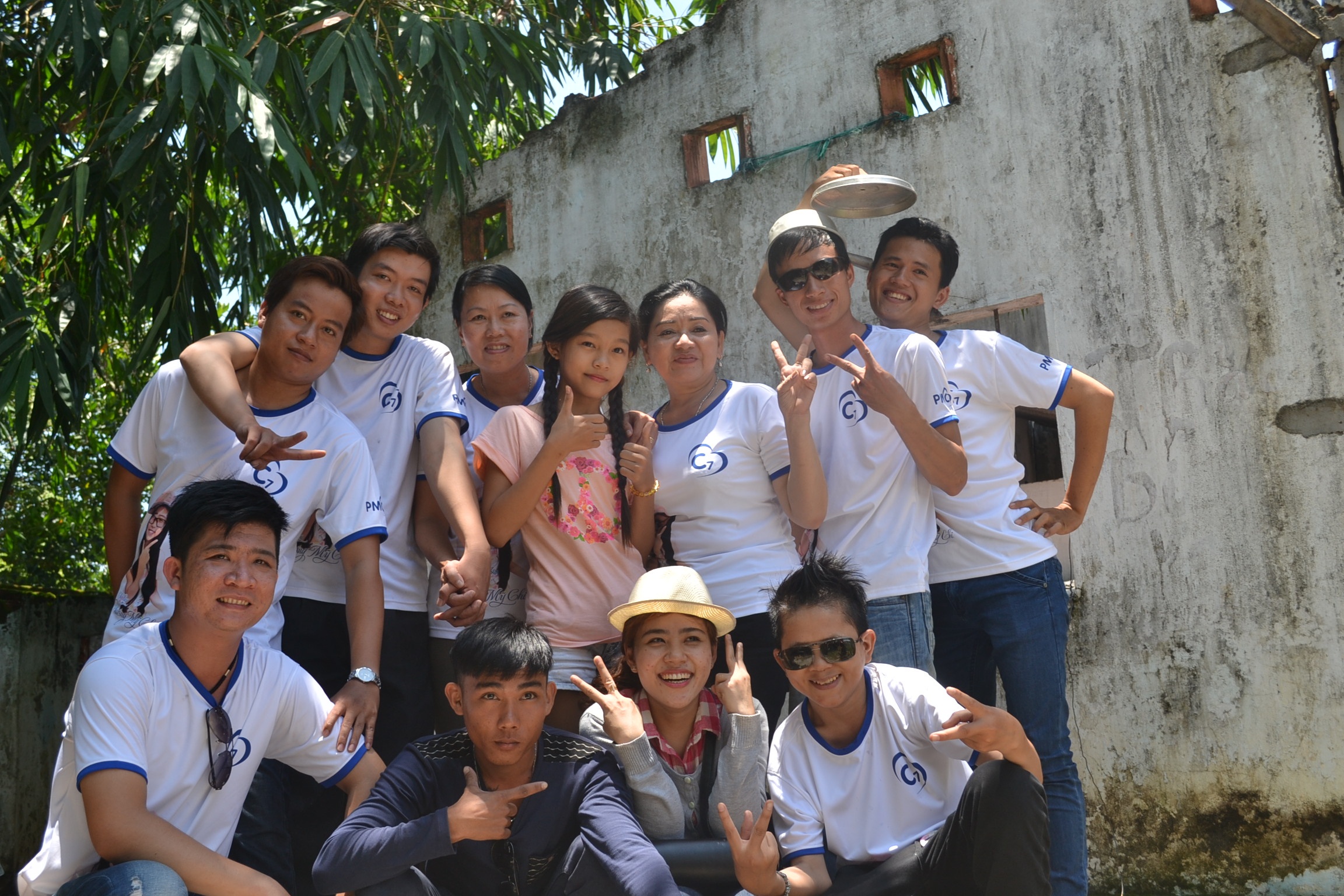 Thu Hiền chụp ảnh kỷ niệm với các thành viên trong gia đình fanclub của chị Bảy Phương Mỹ Chi.