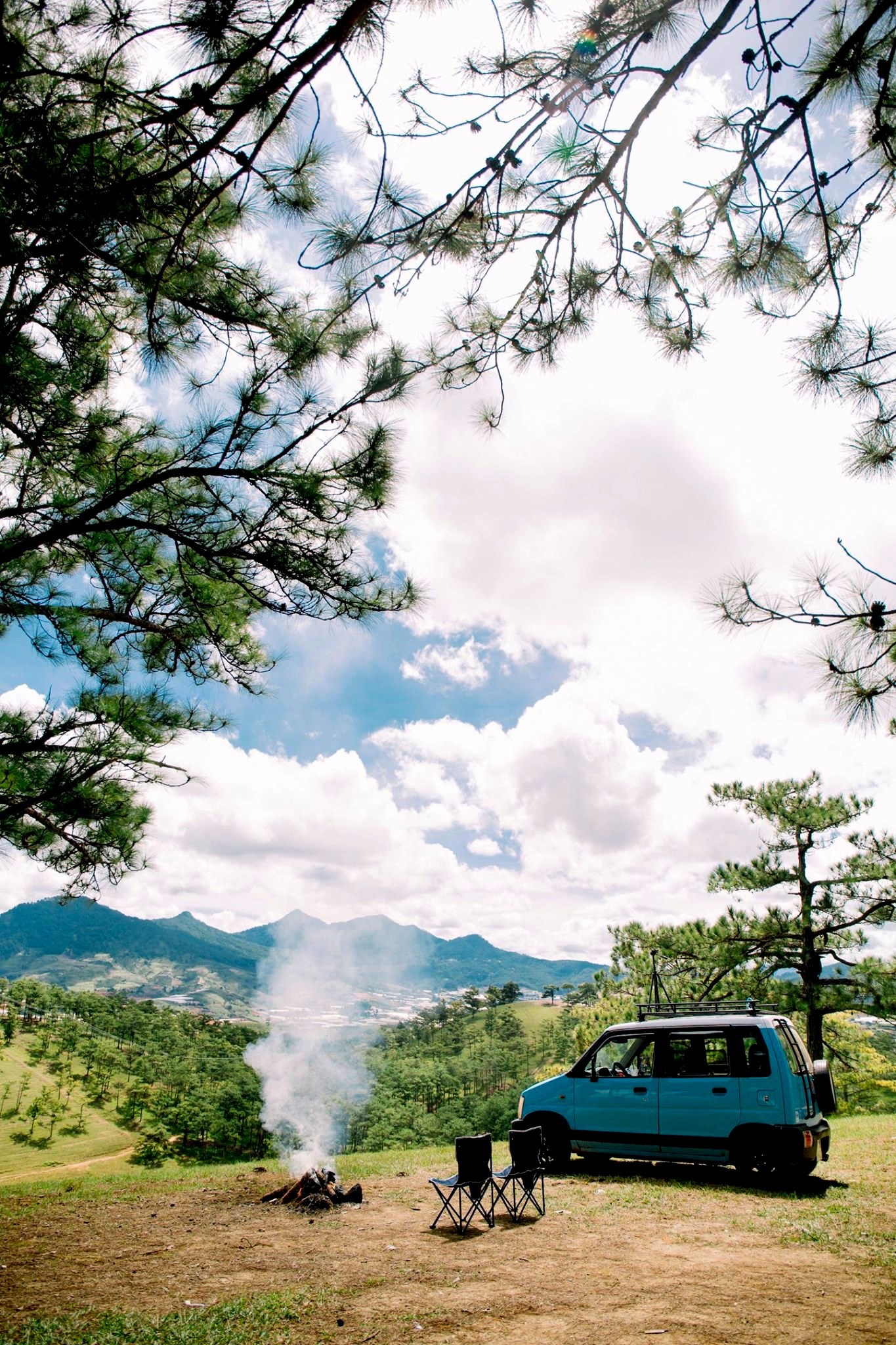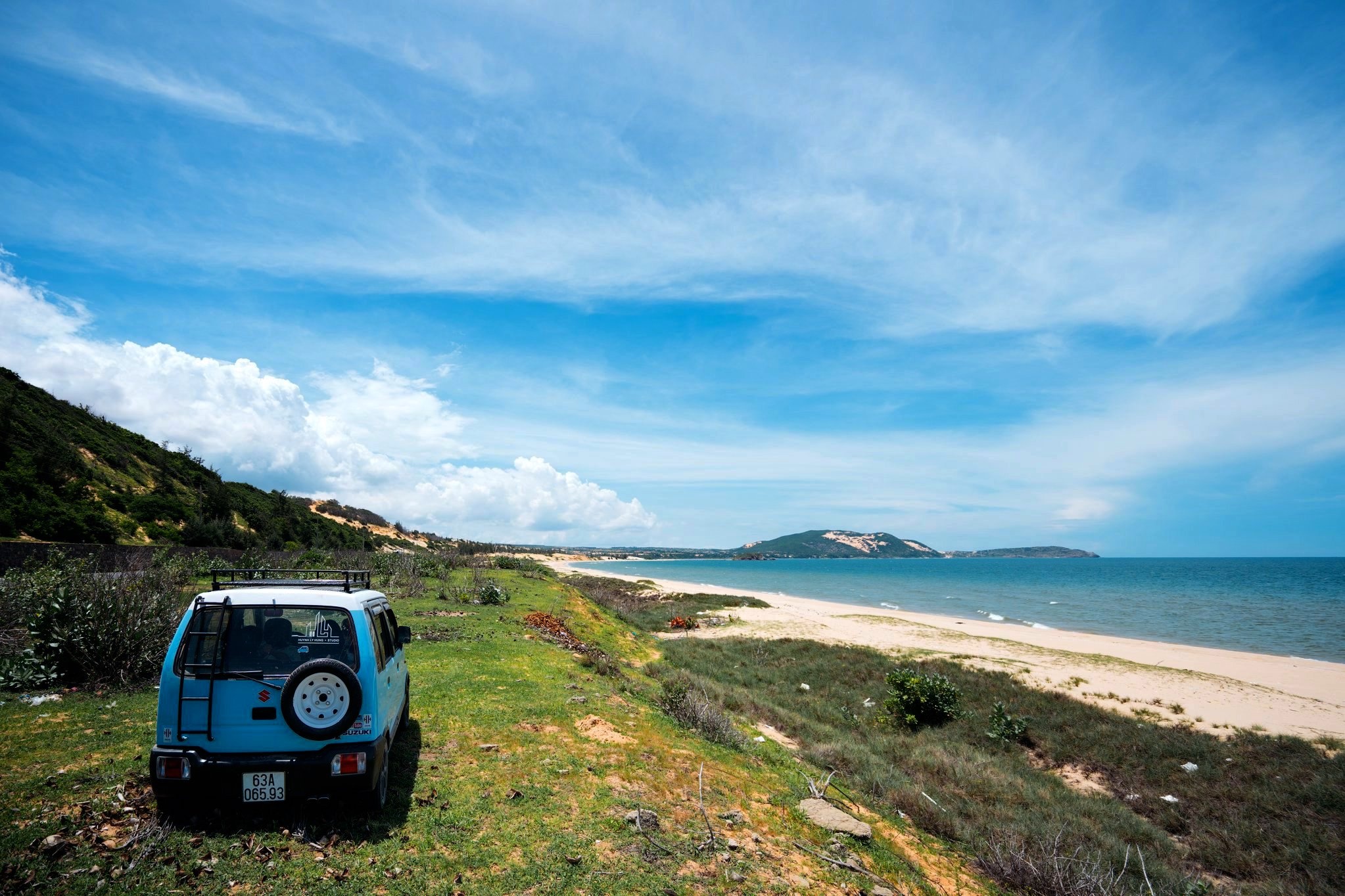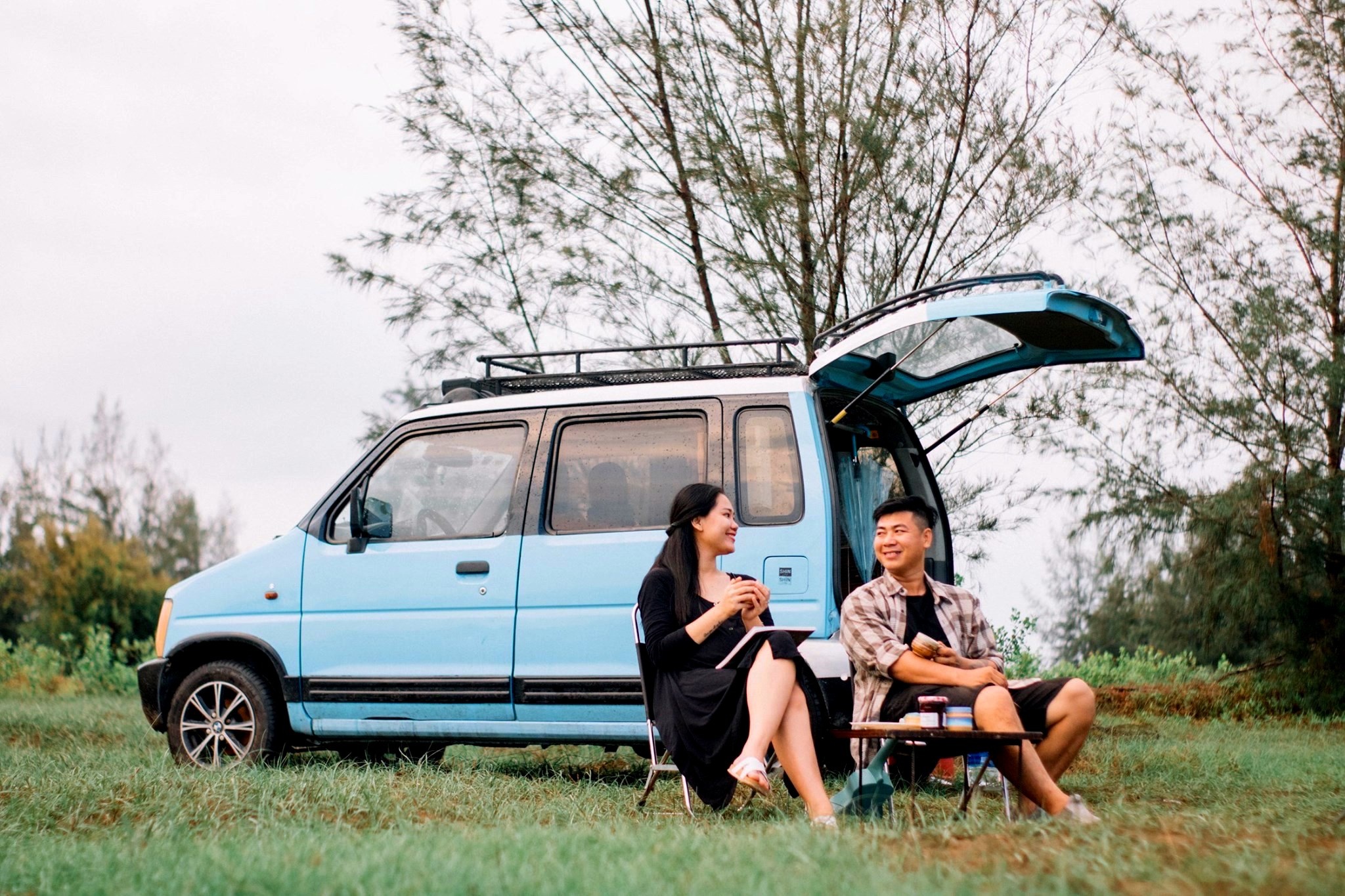 Vốn chung niềm đam mê đi phượt, anh Hùng và vợ đã ấp ủ mua ôtô kể từ khi có em bé để cả nhà cùng nhau chinh phục nhiều vùng đất mới bất kể nắng, mưa. Chia sẻ với Zing, anh Hùng cho biết: "Với nguồn tài chính eo hẹp, vợ chồng tôi quyết định mua chiếc ôtô cũ giá 90 triệu đồng. Sau đó, cả hai thêm nhiều tiện ích khác giúp việc di chuyển thuận tiện". Vì muốn tân trang chiếc xe tựa ngôi nhà di động, anh chị tham khảo các video trên mạng và tự mua vật liệu để cải tạo nhằm tiết kiệm chi phí. Sau gần 1 năm, nội thất xe được hoàn thiện với giường, tủ, kệ, vòi hoa sen... và trở nên nổi bật nhờ lớp sơn màu xanh hút mắt. Nói về "người bạn đồng hành" của mình, anh Hùng hào hứng bày tỏ: "Xe nhìn bên ngoài nhỏ gọn, nhưng bên trong khá rộng và thoáng. Chiếc ôtô không chỉ là phương tiện giúp hành trình thêm thuận lợi mà nó còn mang kỷ niệm của hai vợ chồng. Trên những cung đường dọc mảnh đất hình chữ S, chúng tôi đi chậm để cảm nhận trọn vẹn vẻ đẹp trong từng hành trình mà mình đã qua".