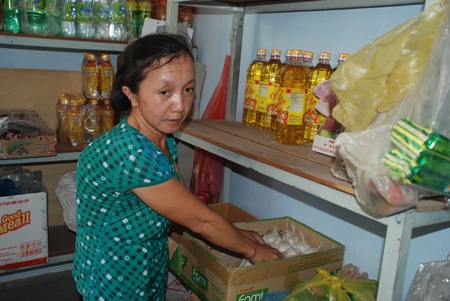 | Chị Liên bên gian hàng tạp hoá của mình. |