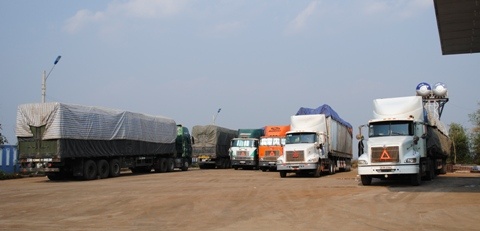 | Xe gỗ qua tải được tập kết để hạ tải. |