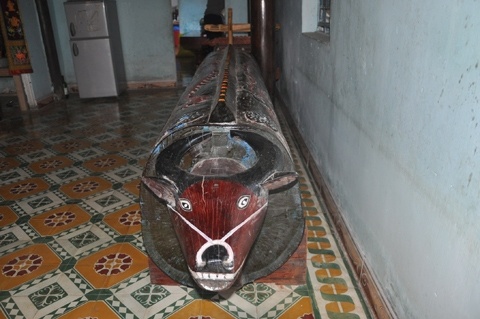 Chiếc quan tài bằng gỗ nguyên khối, hai đầu chạm trổ đầu voi và đầu trâu, bên hông chạm nổi hai con rồng của già làng Y Kông (Tống Cói, xã Ba, Đông Giang, Quảng Nam) phải mất cả năm mới đóng xong.