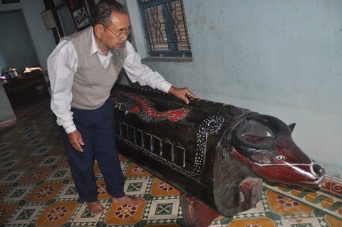 | Tự tay ông bắt đầu đóng quan tài cho mình. Hơn 1 năm một mình đục đẽo, chạm trổ chiếc quan tài này mới xong. |