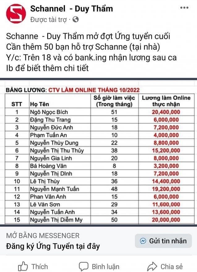 Các trang mạo danh lấy logo CellphoneS hoặc hình ảnh các KOL của chuỗi, sau đó tiếp cận người dùng với các trò lừa đảo quen thuộc như tuyển cộng tác viên online, cộng tác viên làm việc tại nhà, lên đơn hàng nhận hoa hồng.