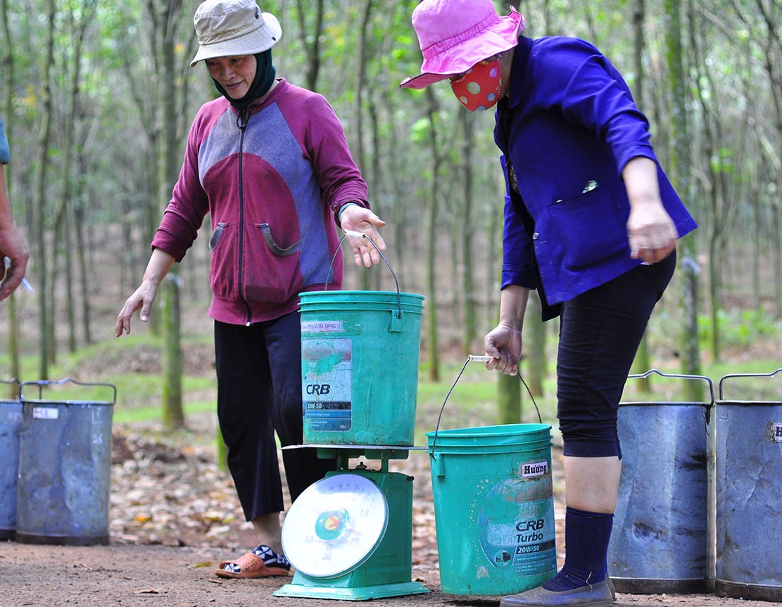 Bà nói: “Khoảng 4 năm nay, giá mủ cao su không ngừng giảm. Hồi đầu năm, giá đang ở mức 10.000 đồng/lít mủ tươi thì nay chỉ còn 4.000 đồng/lít. Với giá này thì thu nhập từ mủ chỉ đủ trả tiền thuê nhân công. Làm không có lãi nên gia đình tôi không mở miệng cây cạo mủ”.