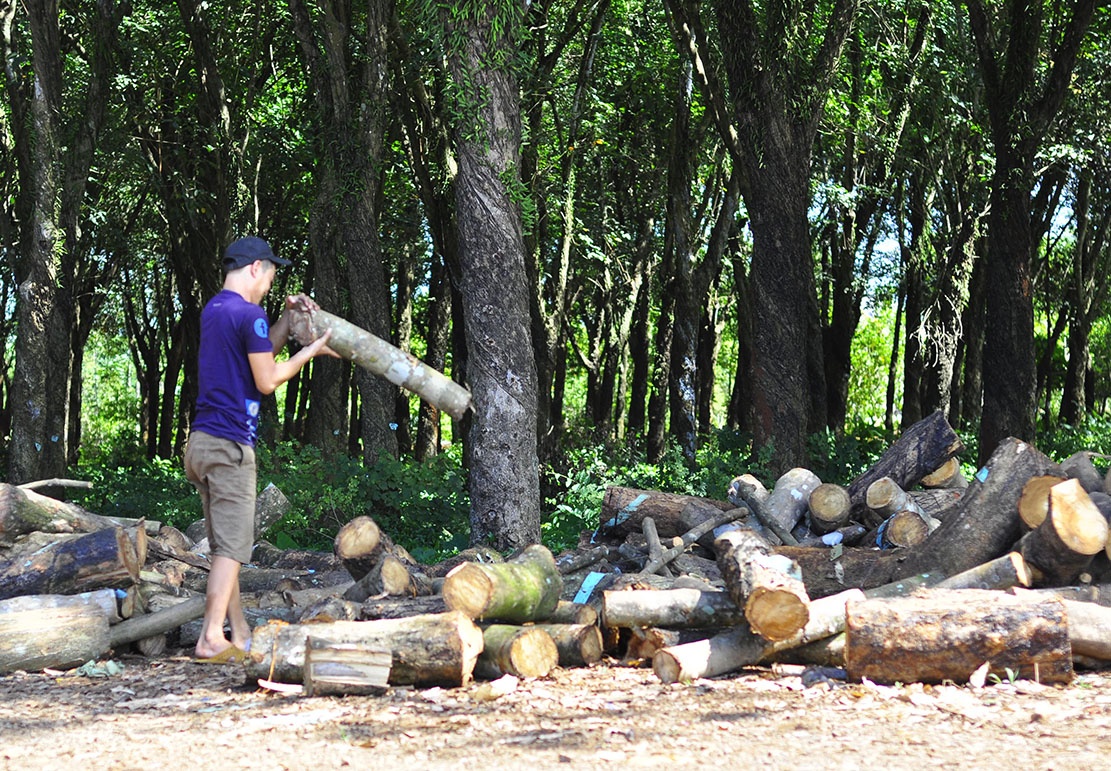 | Cao su rớt giá, nhiều người chặt cây bán gỗ. Ảnh: Ngọc An |