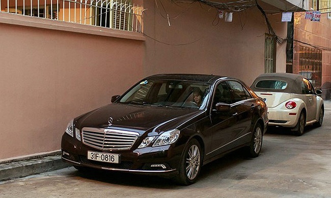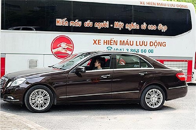 | Chiếc xe Mercedes màu đen thường được Hoàng Thùy Linh sử dụng làm phương tiện đi lại hàng ngày. |