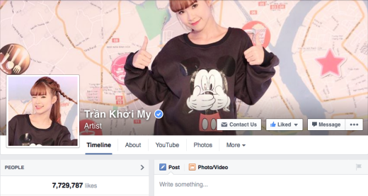 Cô ca sĩ có tới 2 fanpage đều có lượng theo dõi rất cao, một page tên Trần Khởi My với hơn 7,7 triệu follow và một page tên Khởi My với hơn 5,7 triệu follow. Con số này vẫn tăng lên từng ngày.