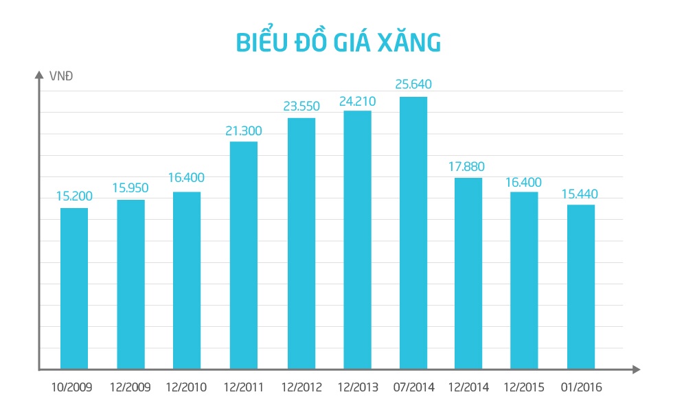 | Diễn biến giá xăng Việt Nam từ năm 2009 đến 2015. Đồ họa: Tuấn Dũng. |