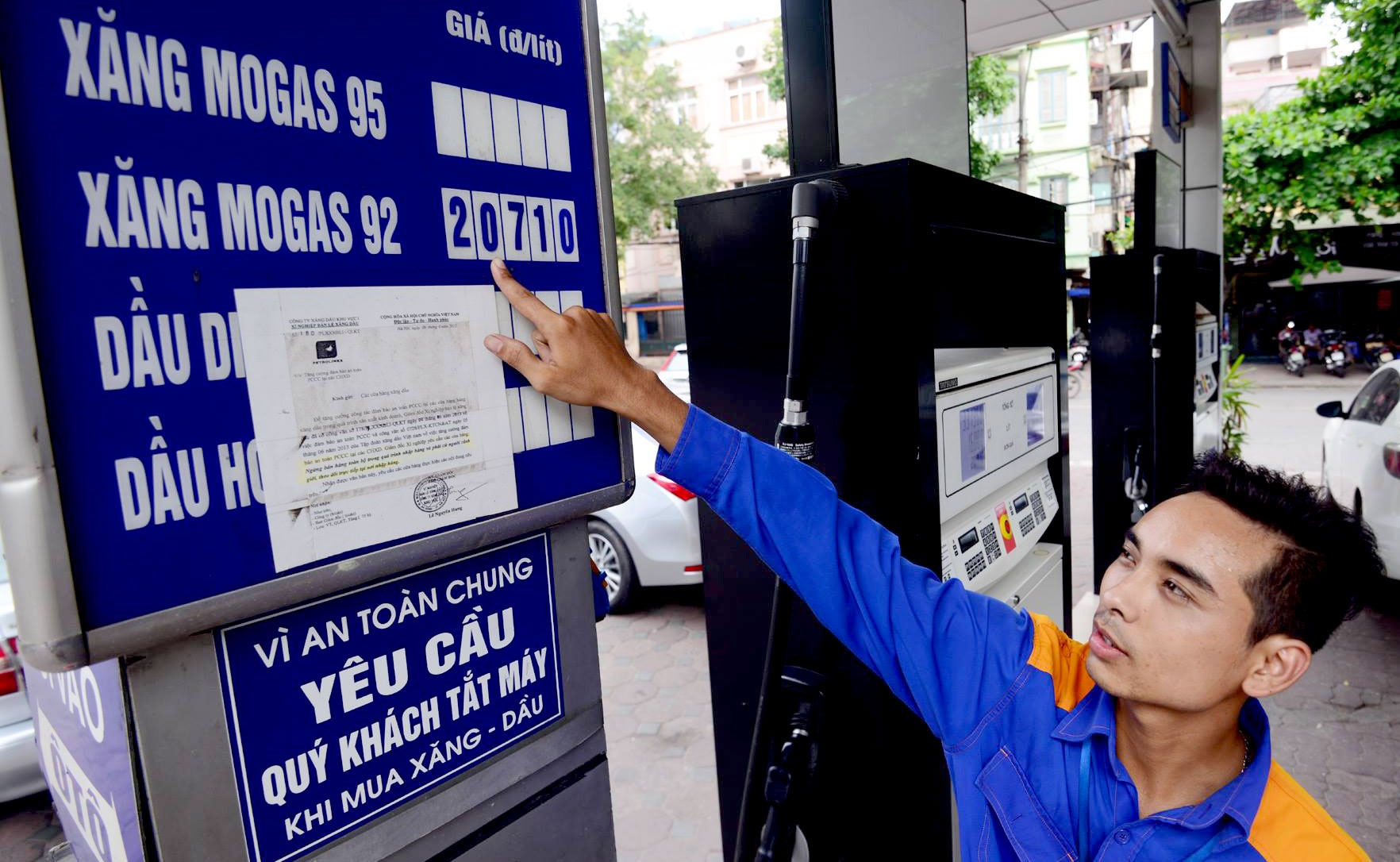 | Mỗi lít xăng tăng thêm 280 đồng kể từ 15h. Ảnh: Lê Hiếu. |