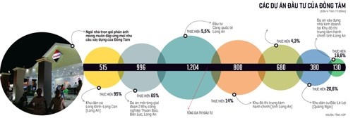 Sân chơi mới này là nơi để Đồng Tâm tiêu thụ sản phẩm của chính mình, đồng thời đa dạng hóa ngành nghề nhằm hỗ trợ lẫn nhau và phân tán rủi ro trong kinh doanh. Hàng loạt dự án lớn đã được triển khai, từ khu đô thị, khu công nghiệp đến xây dựng cảng với tổng giá trị đầu tư gần 4.000 tỷ đồng.