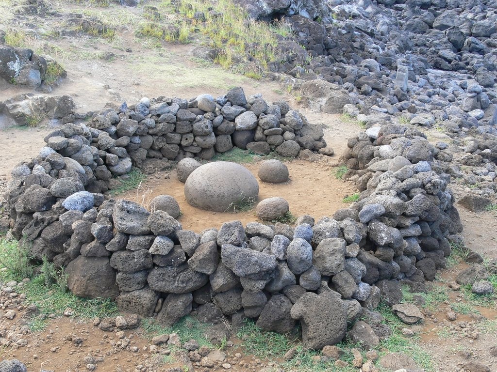 | Thoạt nhìn vào hòn đá, mà những nhà khoa học gọi là “cái rốn của trái đất” dường như không có gì ấn tượng với kích thước của nó, ngoại trừ hình dáng tròn nhẵn và phát ra từ tính mạnh được đặt giữa những khối đá thô xung quanh. Tuy nhiên, hòn đá kì lạ này được còn cho là vị vua đầu tiên của đảo Phục Sinh, Hotu Matua mang đến một cách đặc biệt. |