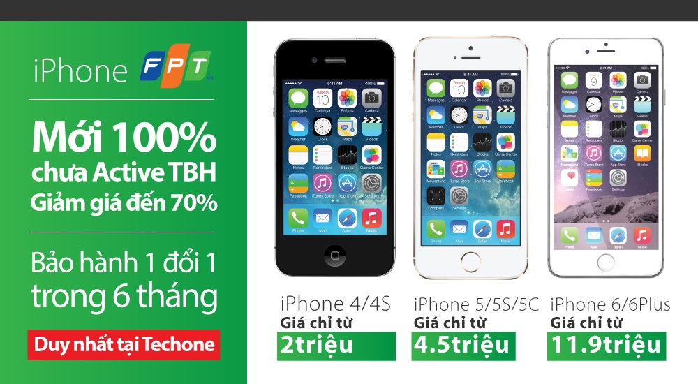 - iPhone 5C/5/5S- FPT trôi bảo hành - Chưa kích hoạ : Giá chỉ từ 4,5 triệu đồng.