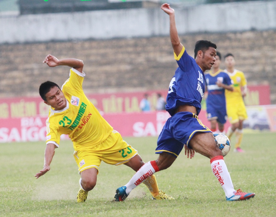 Với dàn cầu thủ già dặn, có trình độ hơn hẳn (lấy từ lò đào tạo của cựu tuyển thủ Văn Sỹ Hùng ở Nghệ An), Hà Nội T&T lấn lướt Vĩnh Long ngay sau tiếng còi khai cuộc. Sức ép mà đoàn quân của HLV Đức Thắng tạo ra liên tục được gia tăng và tới phút 45 họ đã tìm được bàn thắng mở tỷ số. Số 3 Minh Hải thực hiện một cú sút xa từ ngoài vòng cấm rất uy lực và hiểm hóc, đưa bóng găm thẳng vào góc cao khung thành, khiến thủ môn Văn Huyền hoàn toàn bó tay.
