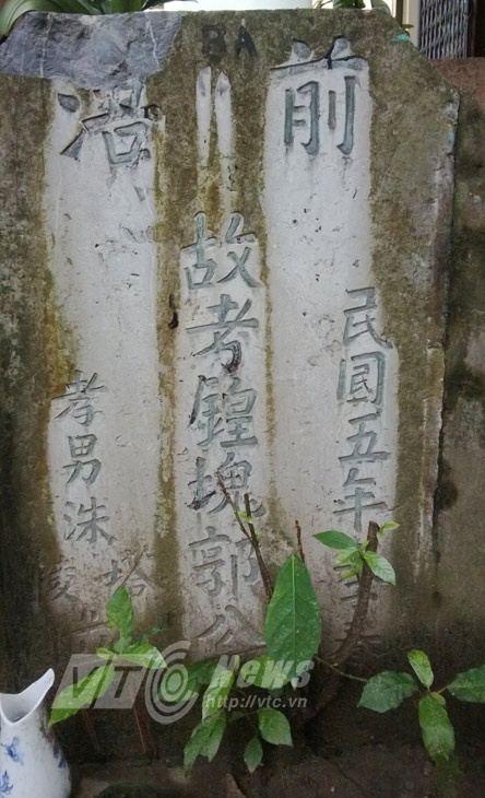 Anh Sơn dẫn chúng tôi ra ngõ, chỉ vào tấm bia đá giữa ngõ và bảo rằng, đó chính là một ngôi mộ Tàu. Theo anh, mọi người sống chung với mồ mả của người Tàu, nhưng chẳng thấy chuyện gì xảy ra. Ông Nguyễn Văn Chiêu, nhà ở ngay cạnh ngôi mộ bảo rằng, xưa kia, ngôi mộ này nằm trên mặt đất, có cả khuôn, hình hẳn hoi, với bia đá khá lớn.