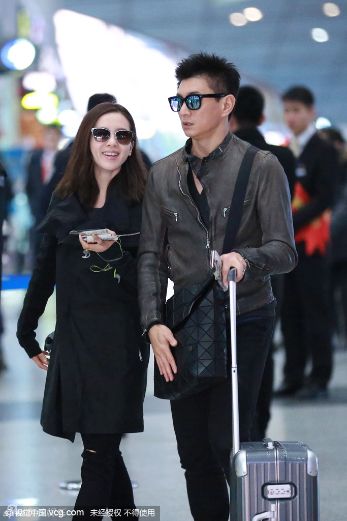 | Lưu Thi Thi rạng rỡ diện áo khoác đen, quần jeans cùng tông. Cô và Ngô Kỳ Long nổi bật khi có mặt tại sân bay trước khi về quê đón tết. |
