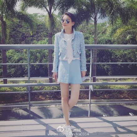 | Mã Tư Thuần trẻ trung trong ngày Tết với trang phục váy xanh cá tinh phối áo phông trắng. Nữ diễn viên sính năm 1988 cho rằng thời trang ngày tết nên đơn giản, tiện di chuyển. Vì thế cô không chọn những bộ váy áo cầu kỳ. |