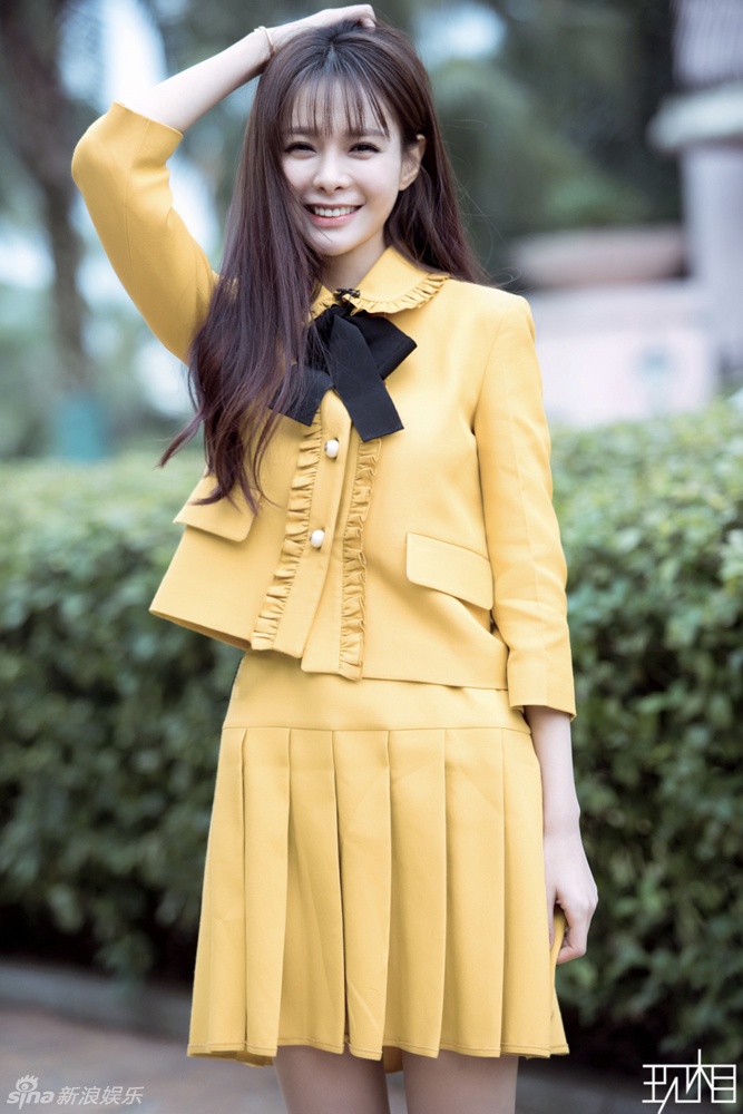 Trầm Mộng Thần đẹp như tranh với bộ vấy vàng tiểu thư khi đi du xuân. Người đẹp sinh năm 1989 là thế hệ sao trẻ được o bế hiện nay, cô còn được gọi vui là “búp bê Barbie”.