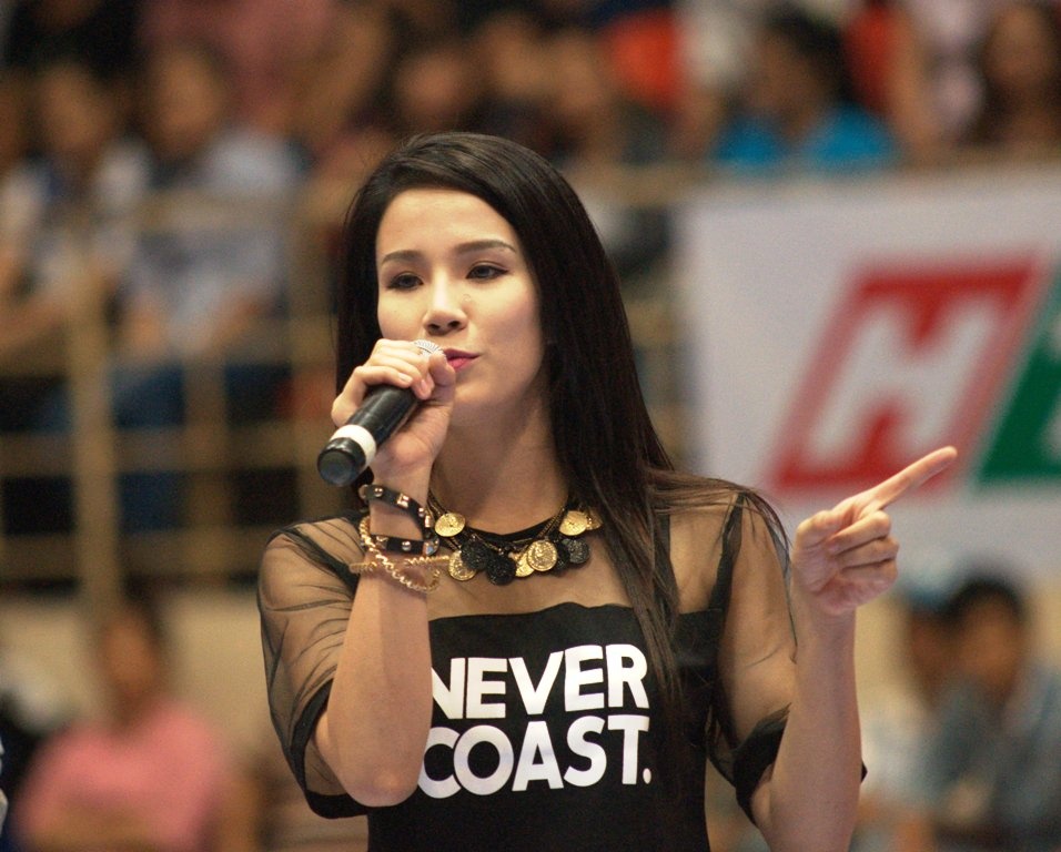 | Ca sỹ Diệp Lâm Anh tăng nhiệt cho ngày thi đấu bằng tiết mục văn nghệ sôi động. |