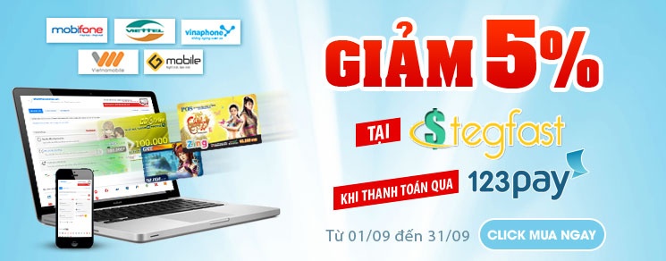 | Tháng 9 ưu đãi cùng Stegfast.com và 123Pay. |