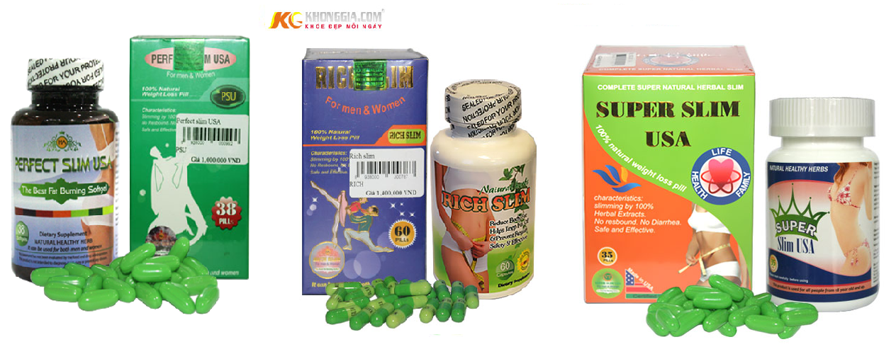 Một số sản phẩm giảm cân có công dụng rất tốt hiện nay là Rich Slim, Perfect Slim USA, Super Slim USA.