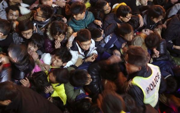 | Cảnh chen chúc trong đêm đón mừng năm mới ở Thượng Hải. Ảnh: Telegraph |