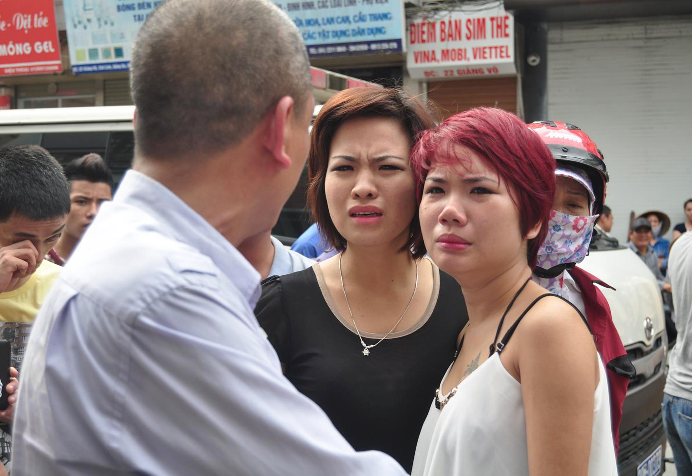 | Hân (áo trắng) và bạn gào khóc khi nhận được tin đồng nghiệp tử vong vì ngạt khói. |