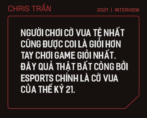 "Đây quả là bất công bởi eSports chính là cờ vua của thế kỷ 21", Chris nói.