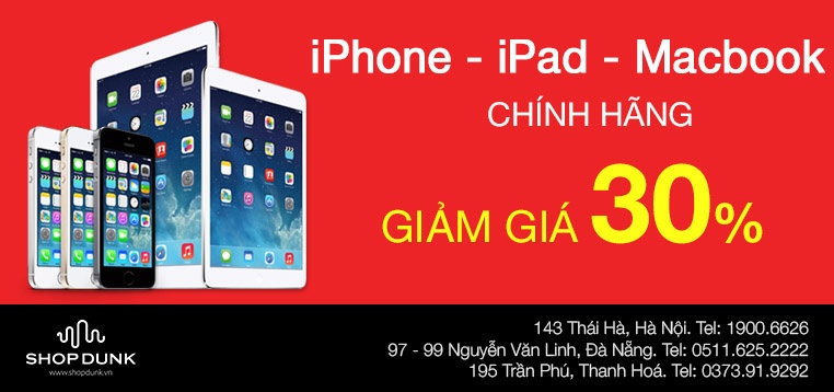 Từ nay đến hết ngày 30/12, tất cả các khách hàng mua iPhone – iPad – Macbook tại Hệ thống siêu thị di động ShopDunk trên toàn quốc sẽ nhận được mức hỗ trợ giá lên tới 30% cùng bộ quà tặng cực kỳ giá trị: