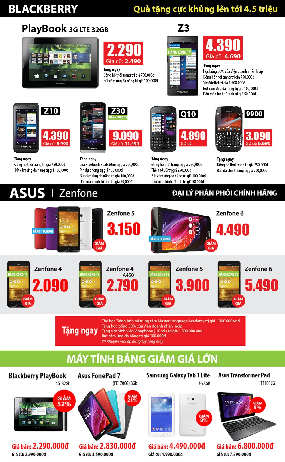 - BlackBerry Z3: 4,3 triệu đồng ( Giá NY: 4,69 triệu đồng), Giảm giá 7%,nhận ngay gói quà tặng trị giá 4 triệu đồng.