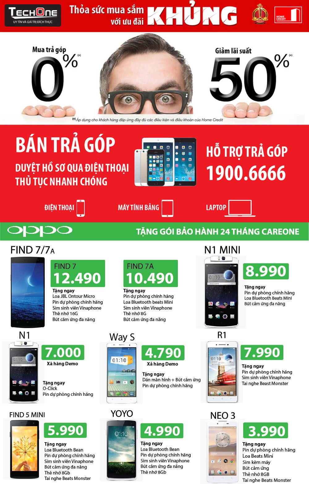 Mua OPPPO nhận ngay 24 tháng bảo hành - duy nhất tại TechOne, giảm thẳng tiền mặt vào hóa đơn cho khách hàng mua OPPO tại TechOne trong ngày vàng.