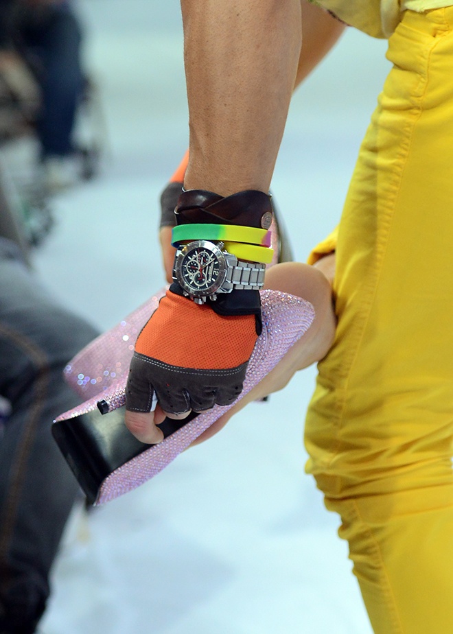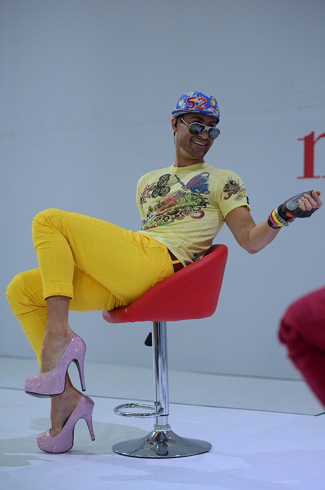 Không dừng ở việc khoe giày, Adam Williams còn hơn một lần lao lên sân khấu và sải bước hệt như những người đẹp trứ danh của làng thời trang để thị phạm cho các thí sinh.