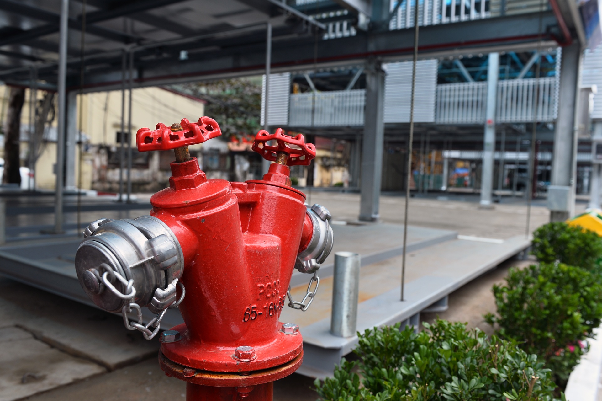| Trụ bơm nước cứu hỏa được lắp đặt đầy đủ ngay trước mỗi block đỗ xe. |