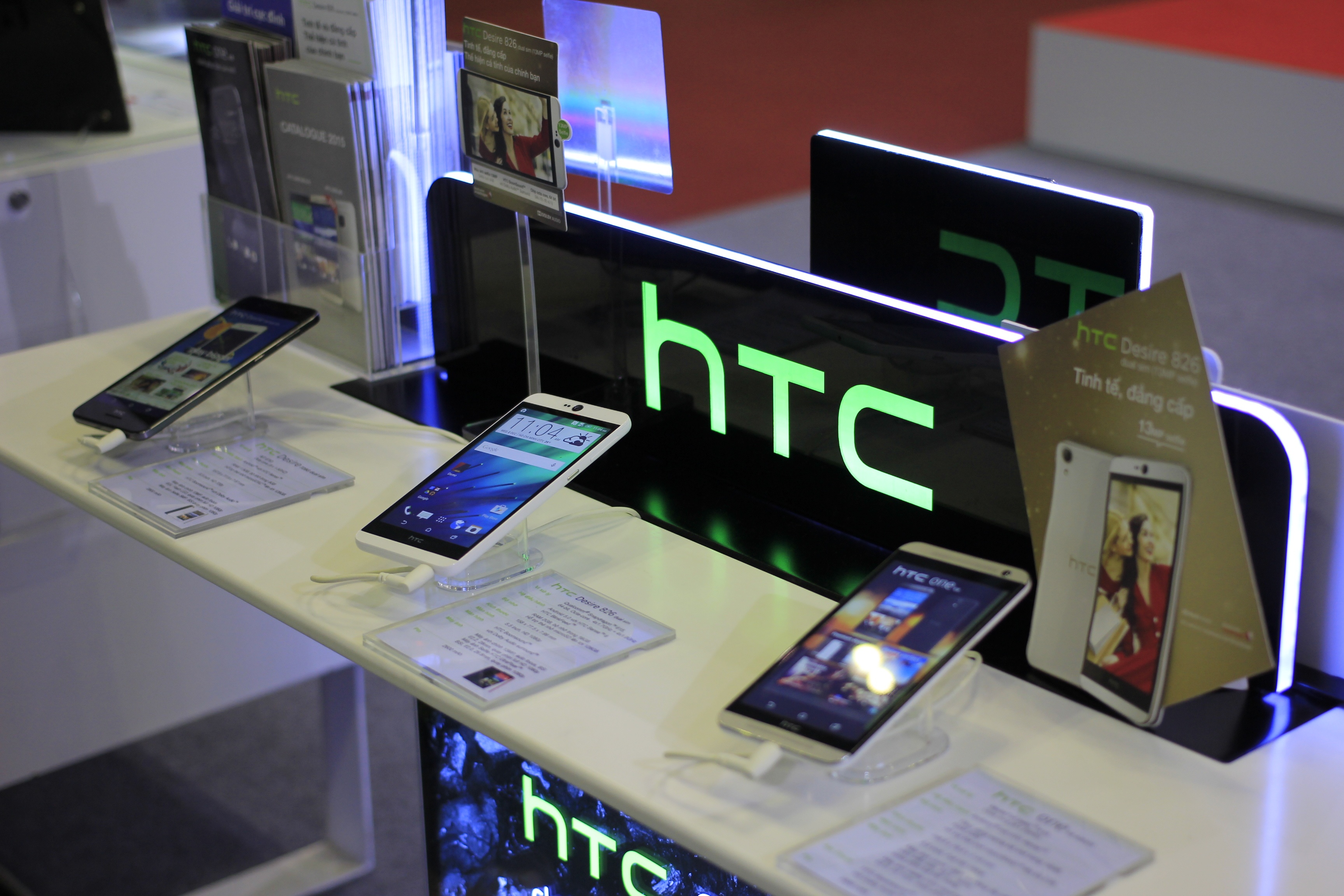 | Mẫu HTC One A9 vừa lên kệ tại Việt Nam cũng được trưng bày tại đây. Đây là model chuyên chụp ảnh và nhấn mạnh vào thiết kế của HTC. |